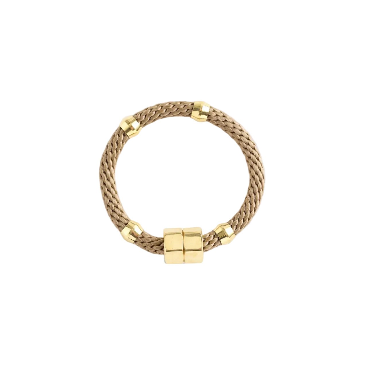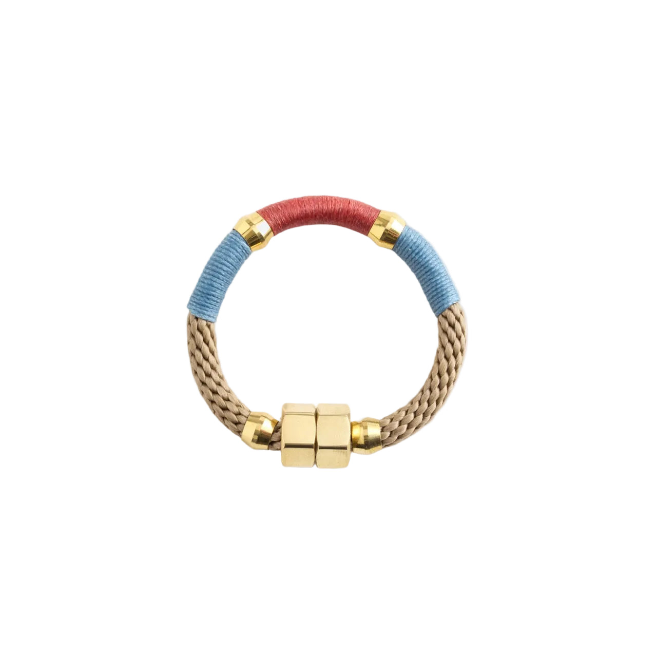 Braided rope and Brass rings closed with a magnetic clasp.